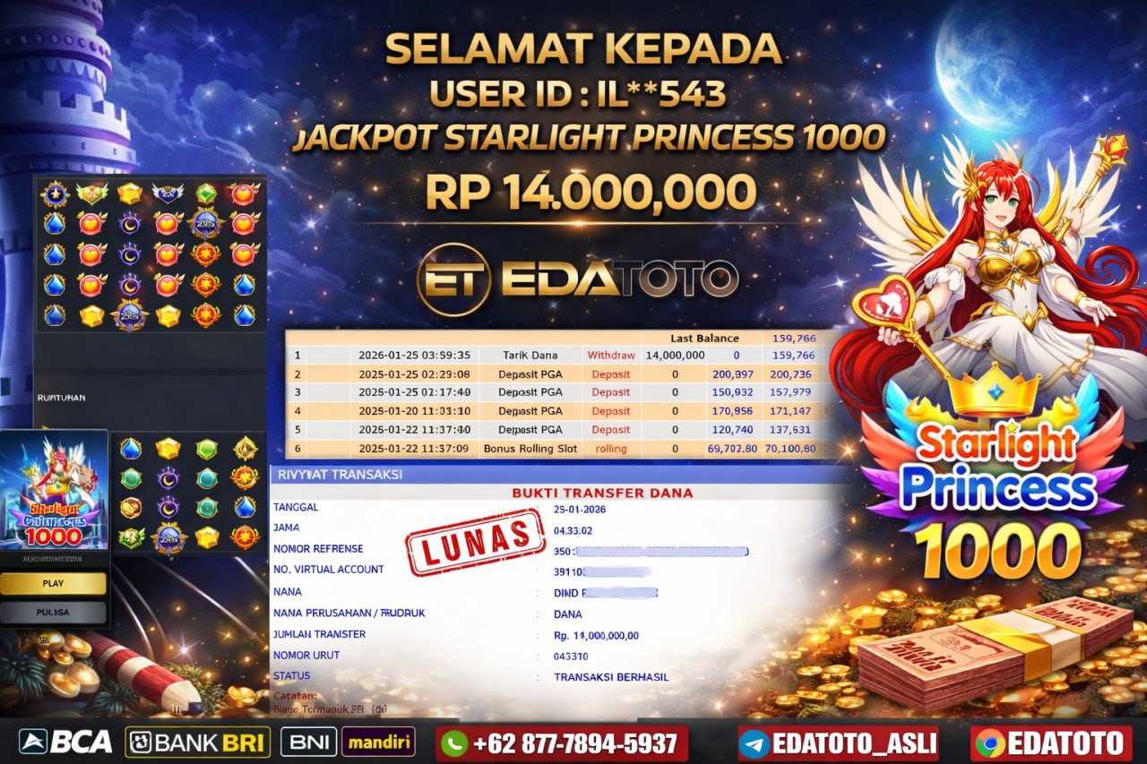 Selamat Kepada Pemilik user ID : IL**543 Hari/Tanggal :minggu/ 25 Januari 2026 Jackpot : Rp. 14,000,000 JT Withdraw : 14,000,000 . . .